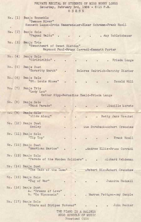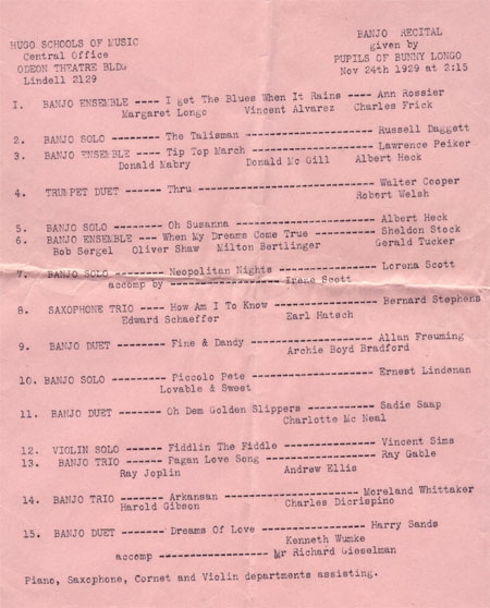 Banjo Recital given by pupils of Bunny Longo on November 24, 1929.