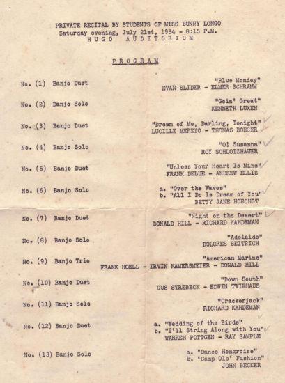 Private recital by students of Bunny Longo on July 21, 1934, at Hugo Auditorium.