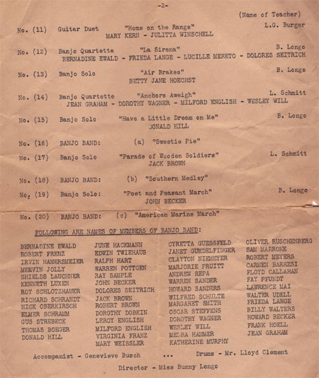Page 2 of 2: Banjo and Guitar Concert by students of the Hugo Schools of Music on December 5, 1934, at Hugo Auditorium.